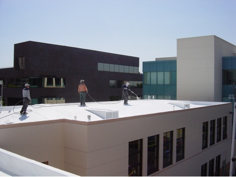 They decided to improve the roofs with a special white coating that would block harmful ultra violet light from the sun and extend the roof life another 10 years.