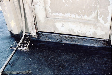 Perimeter metal and flashings were primed and two layers of an elastomeric compound and polyester were applied.