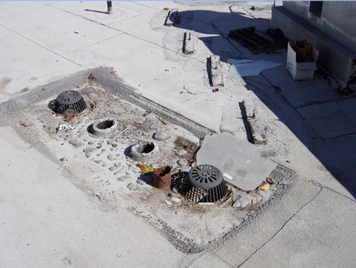 This drain is in poor condition. This will cause premature roof failure. Leaks in a drain area cause major damage.