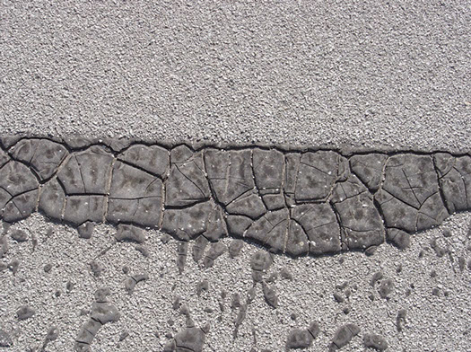 Cracks in this asphalt show how the ultra violet radiation breaks down the hydrocarbon molecules that most roofs are made of.