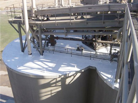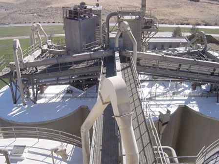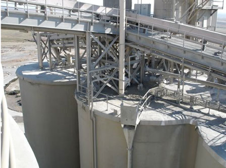 Walkways, tubing and vents were taken into consideration as part of the roofing plan for these cement storage silos.