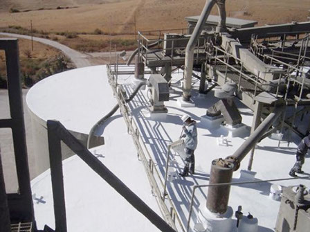 After the emulsion had dried, an acrylic white coating was painted onto the roof.
