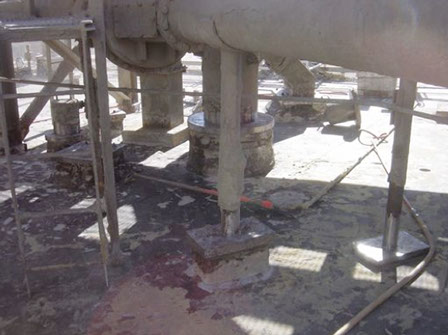 Prepwork took a few months. In the foregorund, you can see two penetrations that have been ground down and cleaned.