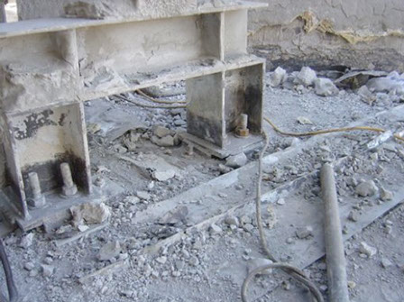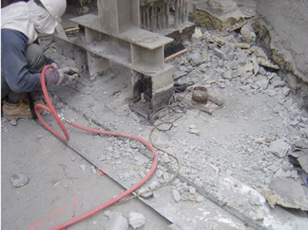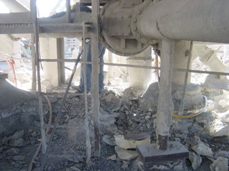 Jackhammers were used to clear the main bulk of the debris from the silo roofs.