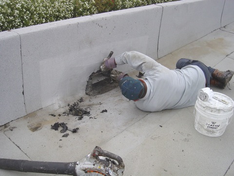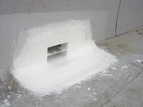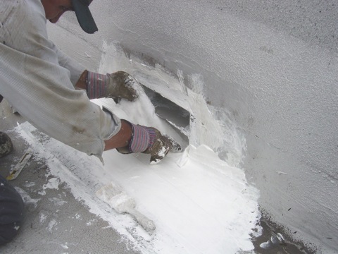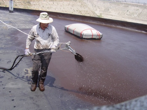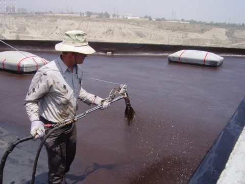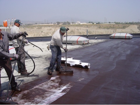 Fiberglass roving is chopped through a special gun at the same time the emulsion is applied. This creates a thick waterproof barrier that water cannot penetrate.