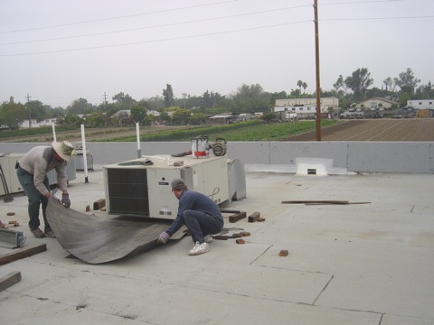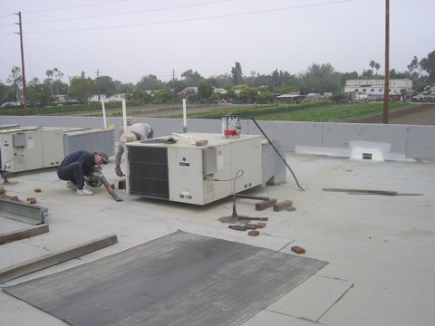 A 2 ply modified bitumen sheet was set under each a/c unit.
