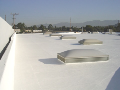 After the emulsion has dried, the roof recieves an elastomeric white coating.