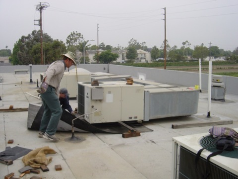 Each a/c unit needed to be prepared. All units were raised, dirt and debris were cleaned from underneath.