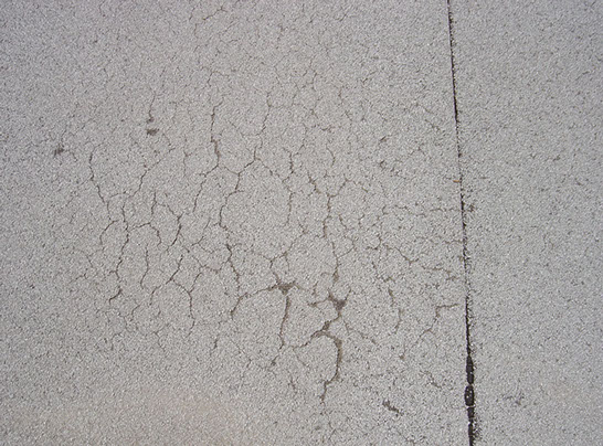 Cracks in this asphalt show how the ultra violet radiation breaks down the hydrocarbon molecules that most roofs are made of.